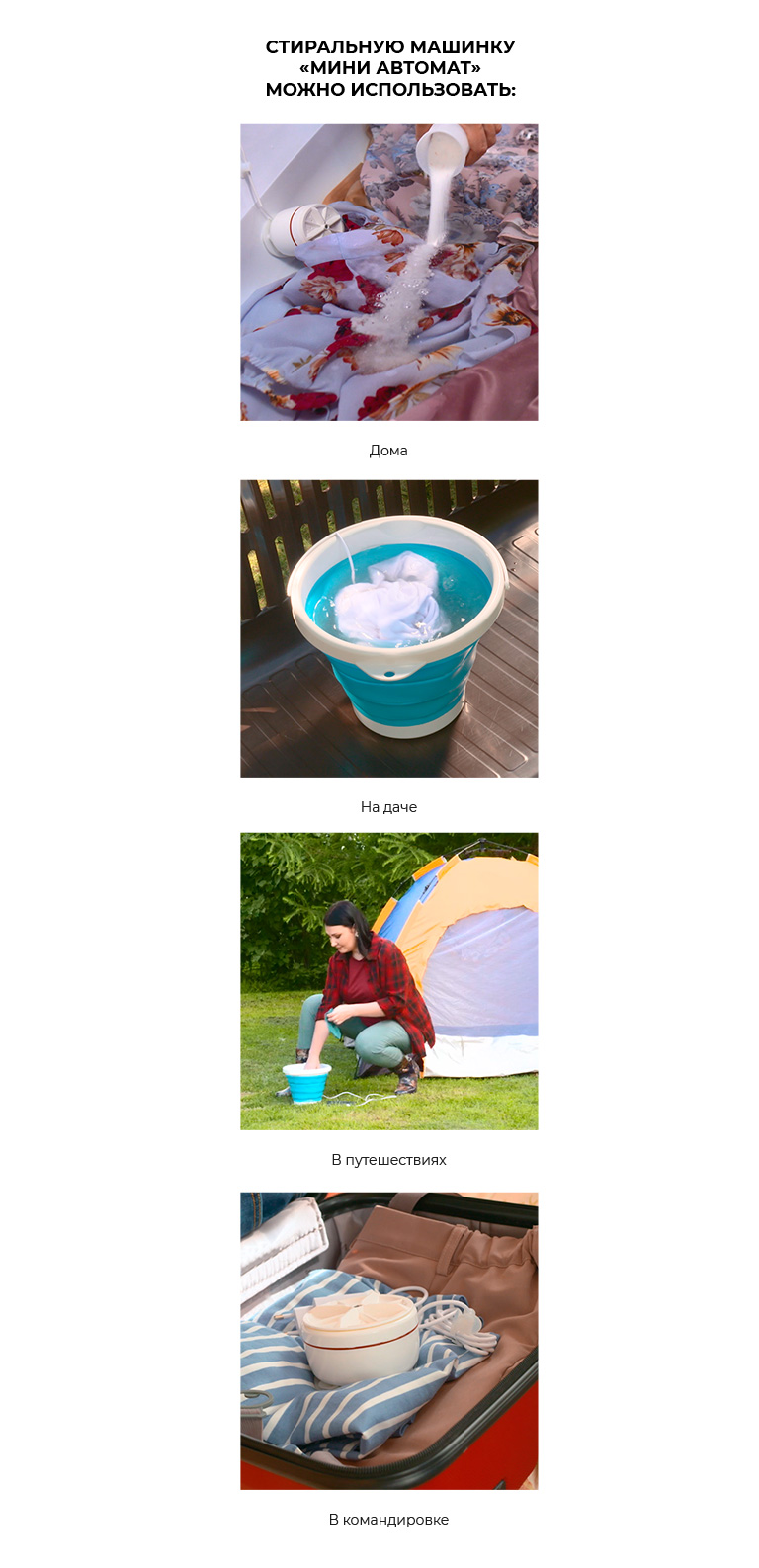 Складные стиральные машины облегчают жизнь студентам и экономят место в небольших квартирах, общежитиях, лагерях, домах отдыха и пляжных домиках. Она может стирать до 2 кг белья за один раз.